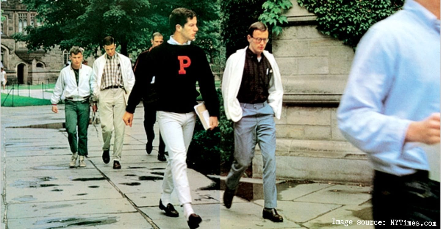 Emerging in the early to mid-20th century, Ivy League fashion was shaped on campus, where classic tailoring met sportswear in a relaxed yet considered way. Students paired soft-shouldered blazers with button-down Oxford shirts, knitted ties, and penny loafers, creating a look that was smart without being overly formal. This effortless approach to dressing became synonymous with East Coast collegiate culture and later inspired menswear across Britain, Japan, and modern smart-casual wardrobes worldwide.